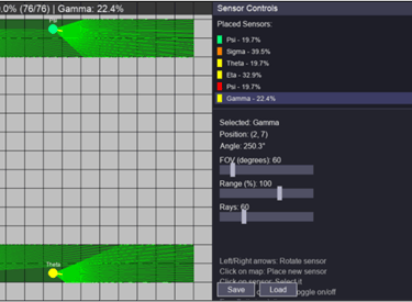 Configure — Sensor range and field-of-view are set before training.