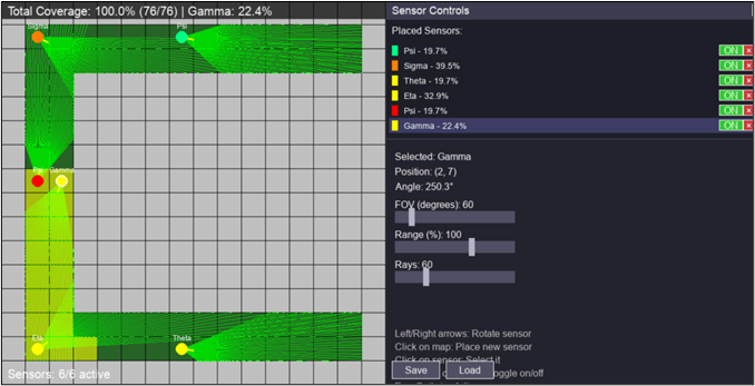 Visualise — Ray-traced FoV overlays show exactly what each sensor detects.